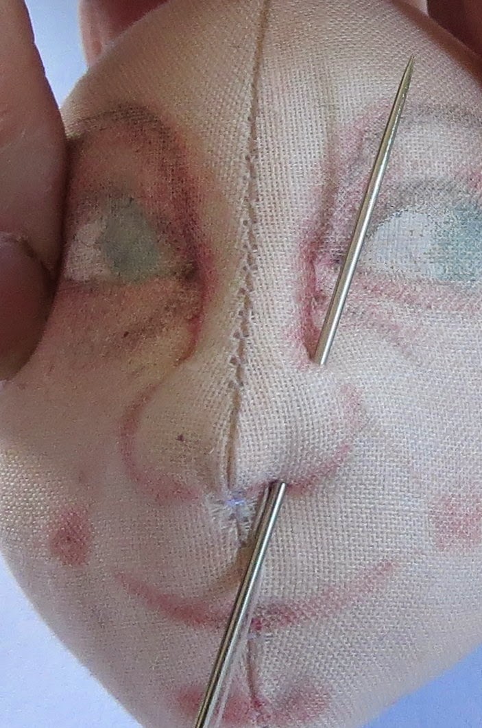 Введите в верхней части ноздрю вспышки и выхода под выступ. Это делает отступ между губой и подбородком. Возьмем стежок на другую сторону. (Обратите внимание на то, как стежки под нос и подбородок растянуть хлопчатобумажную ткань, я не мог бы устранен, что, делая мой длина стежка меньше - но я не ............. вздыхать не помните!. никто не заметит, когда это все закончено - если она не входит в конкуренции, и мой рукоделием залез!