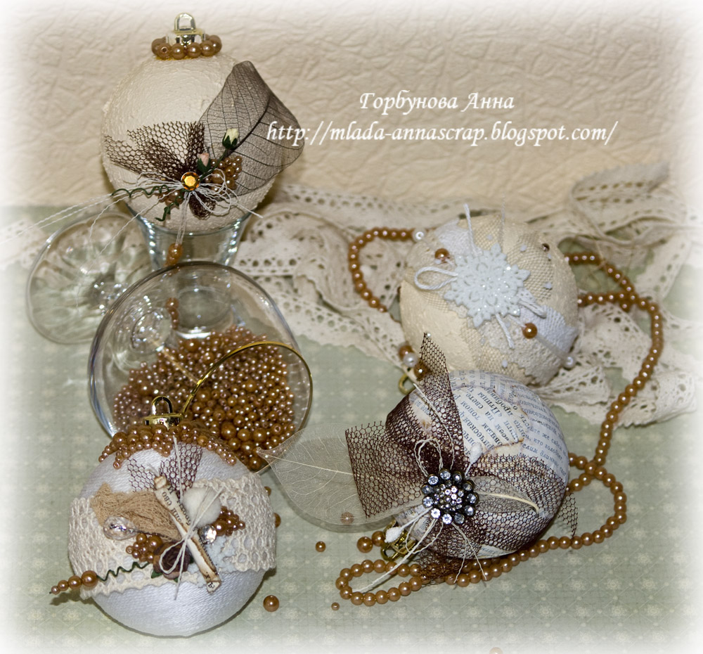 Декорировала обычные пластиковые елочные шарики. Конечно, хотелось сделать больше, но увы, никак не могу еще смириться, что не будет у меня моей любимой огромной елки до потолка и шириной в пол комнаты....