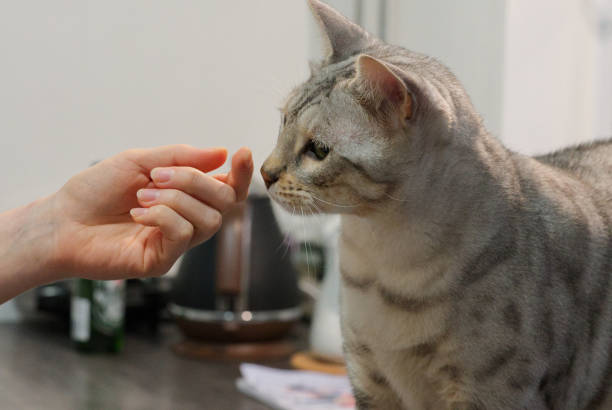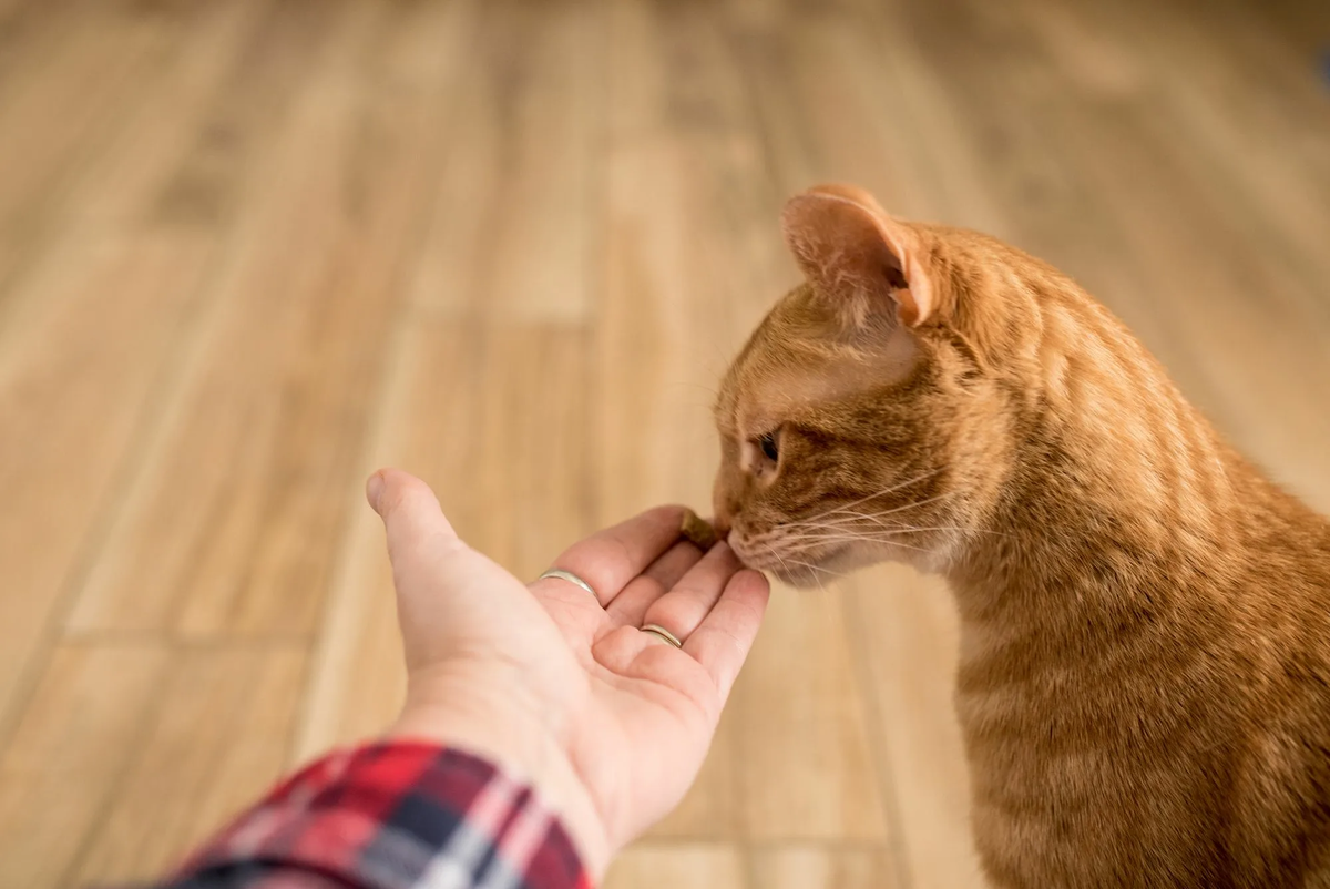 Когда кошка сама решит подойти (а она решит, если вы не будете суетиться), медленно присядьте, протяните согнутый указательный палец на уровне её носа. Пусть понюхает. Это кошачье «здрасьте».