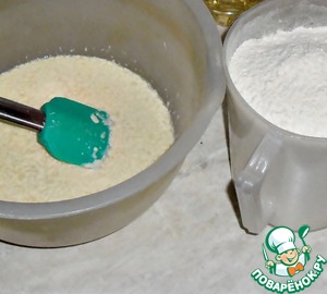 Перемешать хорошо лопаточкой, влить растительное масло и замесить крутое тесто.