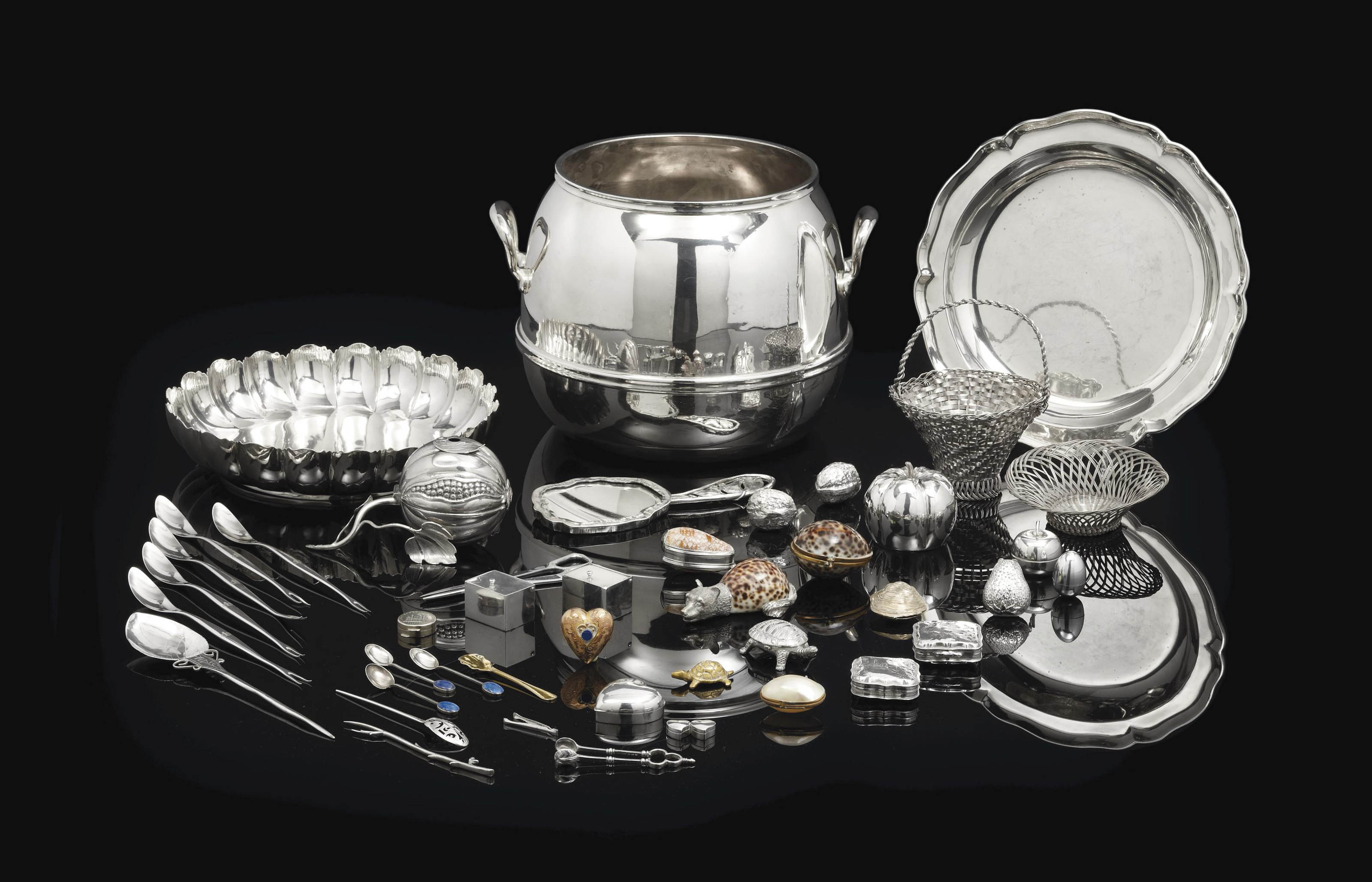ENSEMBLE EN ARGENT, VERMEIL ET METAL ARGENTE