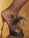 А значит, классические лодочки и шпильки следует разнообразить яркой цветовой палитрой, бантами, розетками из блестящих камешков, перышками, кружевными вставками.