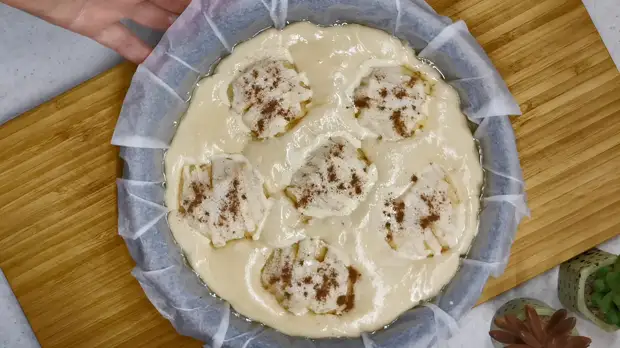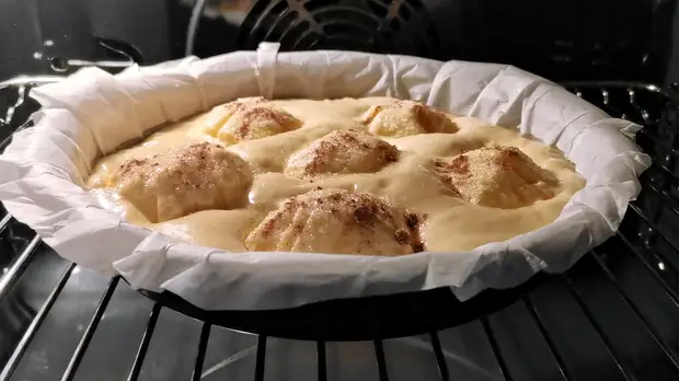 Ну вот и все дела. Движений реально на 5 минут. Ставим пирог в духовку и выпекаем 35-40 минут при температуре 180 градусов. Духовку, как обычно, разогреваем заранее. Не забывайте про этот момент. 👆