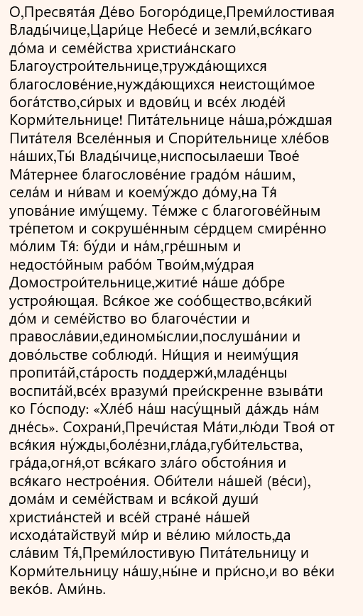 Молитва Божьей Матери: Нищия и неимущия пропитай, старость поддержи, младенцы воспитай, всех вразуми
