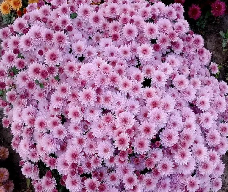 Хризантемы прекрасно смотрятся как в групповых посадках, так и в сочетании с другими цветами. Особенно красиво они выглядят под лиственными деревьями и декоративными кустарниками, которые меняют цвет листвы в течение сезона. Эти цветы также можно посадить рядом с многолетниками или декоративными кустарниками.