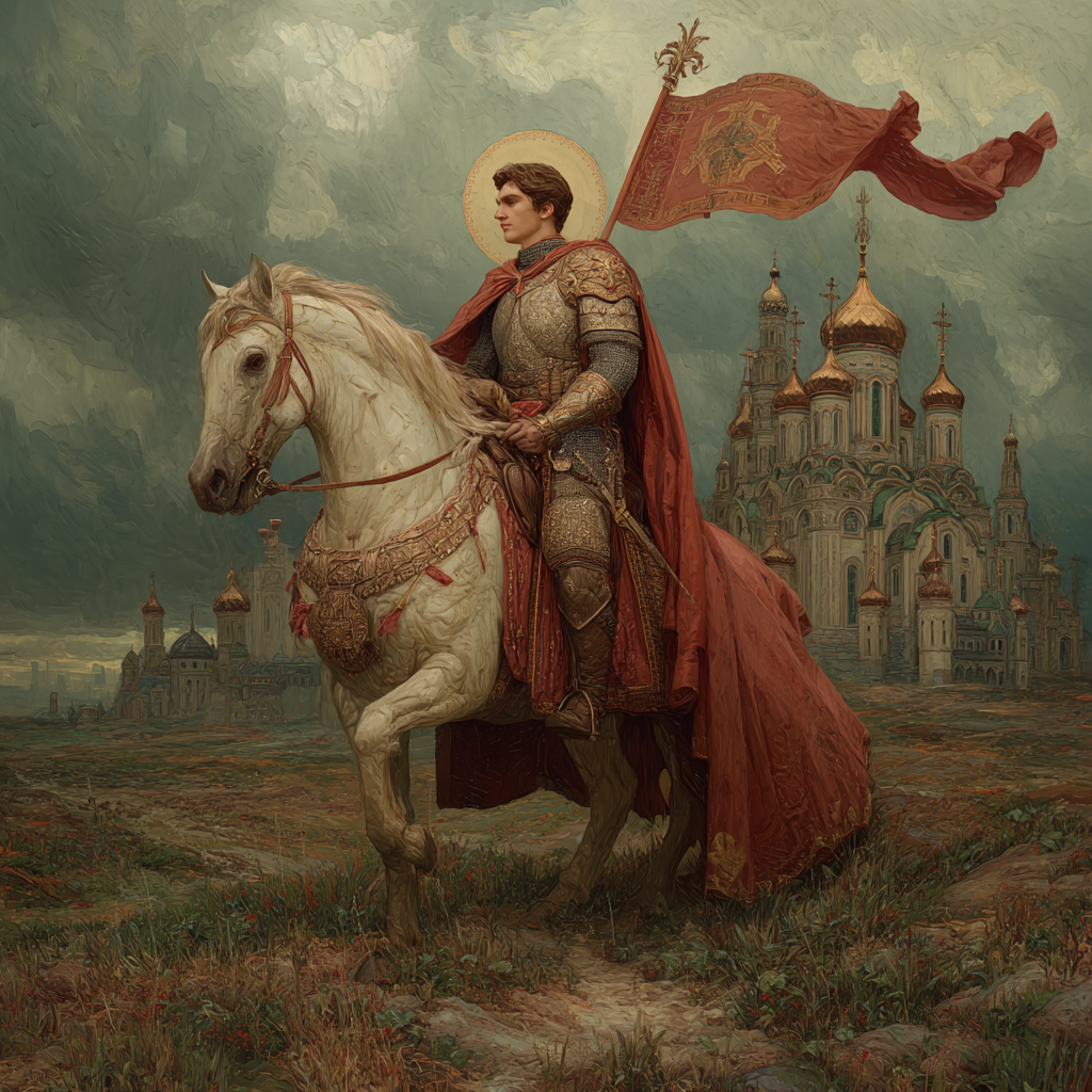 Святый великомучениче Георгие Победоносче! Моли Бога о нас, грешных. Подай нам силу духа твоего непобедимую, защити от всякого зла, видимого и невидимого. Помоги одолеть трудности, страхи и искушения, как ты победил мучителя и змия. Будь нашим щитом и заступником в скорбях, наставником в вере и помощником в добрых делах. Да сподобимся по твоим молитвам победы над страстями и жизни мирной и богоугодной.