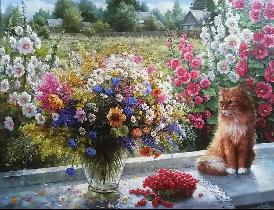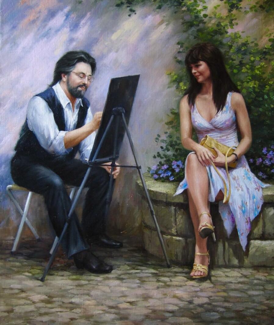 Художник выполняет работы в стиле реализма.