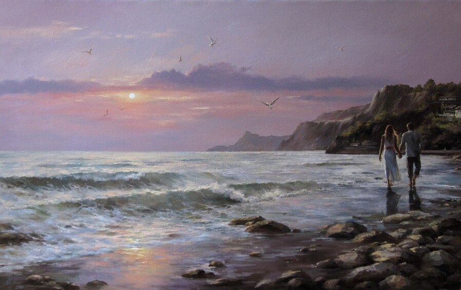 Приди на берег моря и постой, Тебя пленит сверкающая даль.