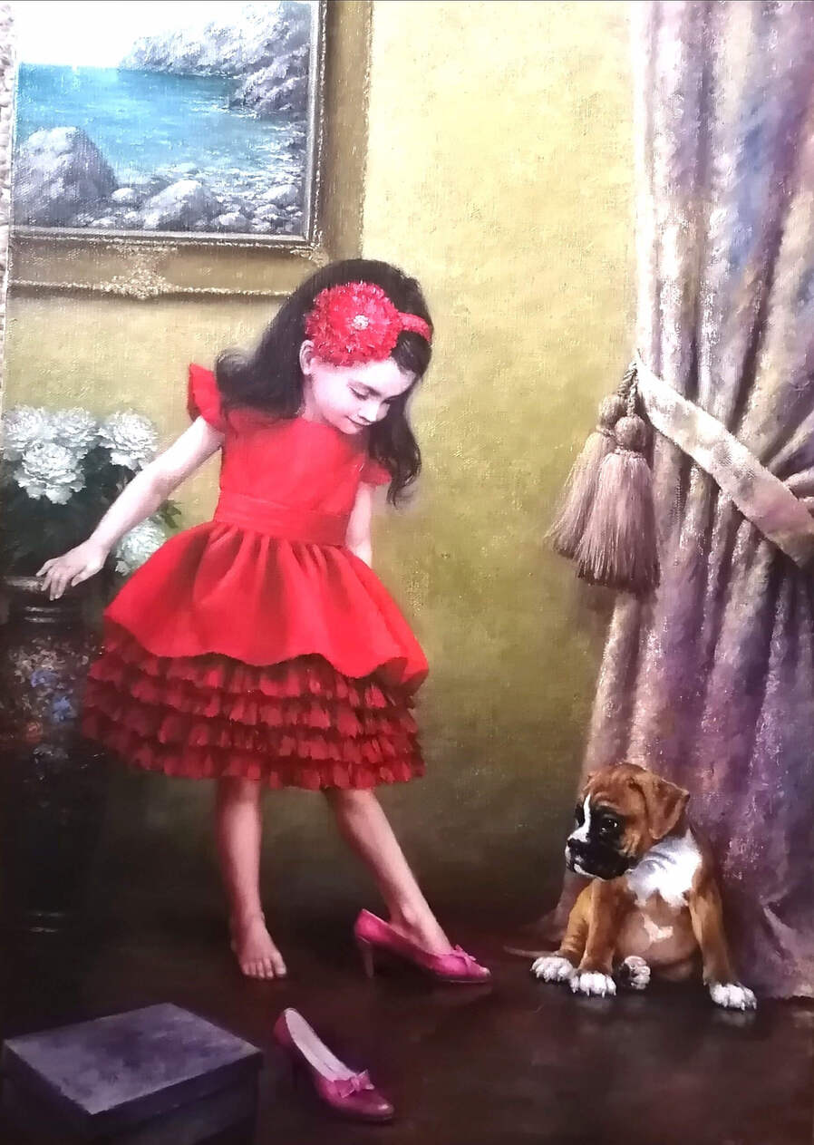 Это может быть как копия известной картины, так и любая жанровая сцена, пейзаж, натюрморт, портрет и прочее.