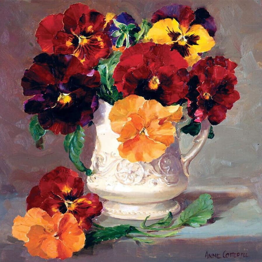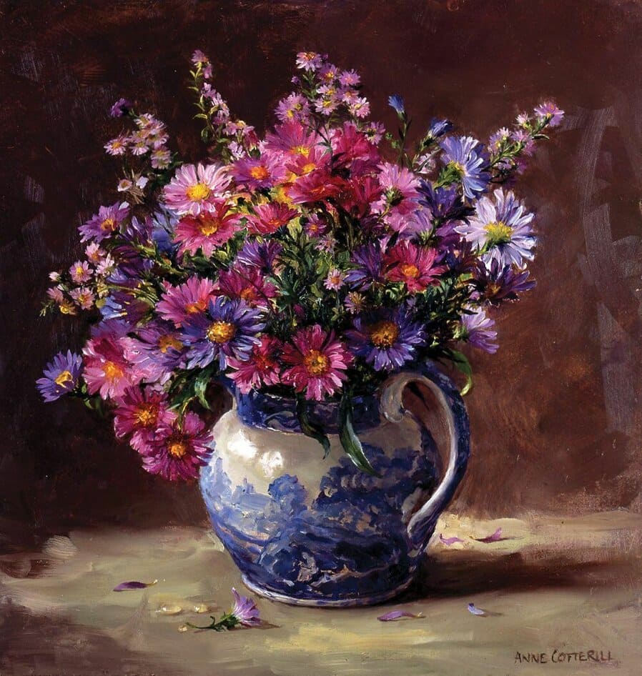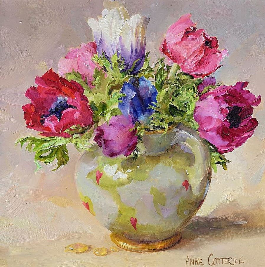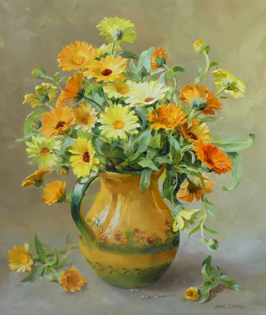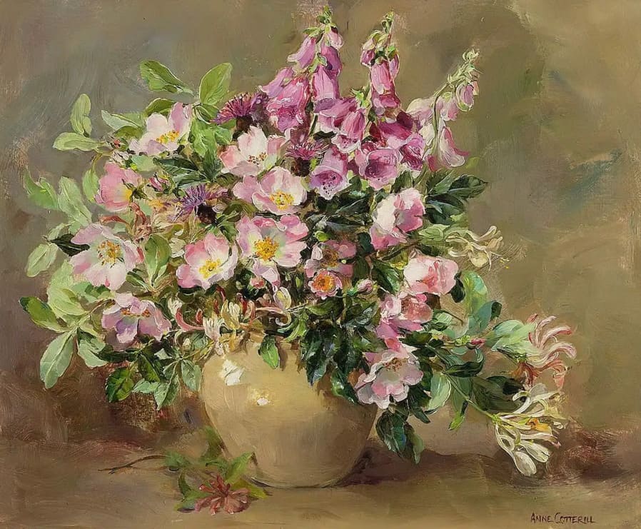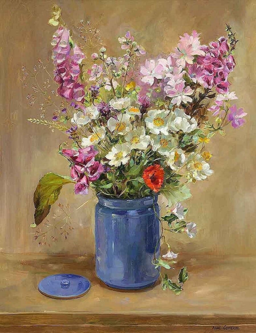 Энн обожала цветы и писала их всю свою жизнь. Она черпала вдохновение в сезонных полевых цветах, растущих в ее саду и окрестностях, в Западном Сомерсете.