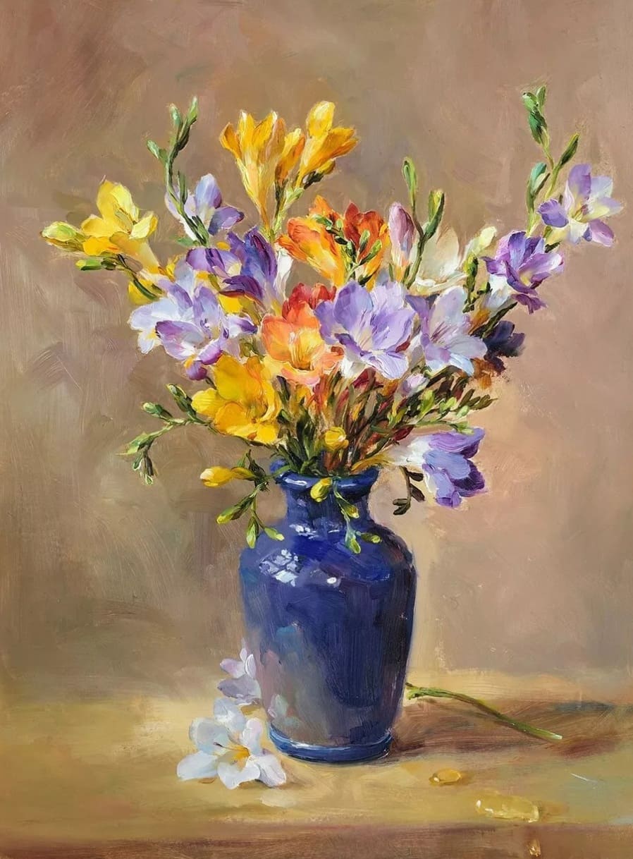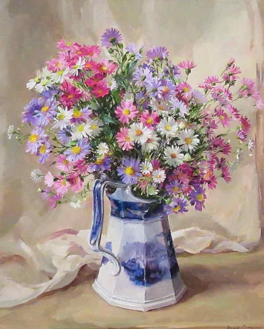 Особое значение художница придавала свету, падающему на букет под тем особым углом, когда цветы вдруг волшебным образом оживают на холсте и хочется вдохнуть их аромат.