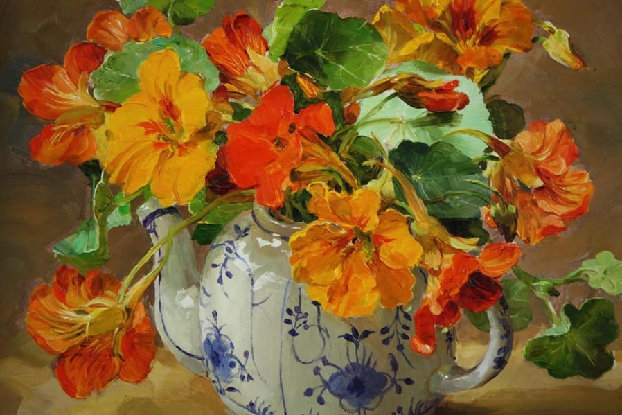Предпочитала работать маслом, выбирая яркие и сочные цвета, чтобы передать свежесть цветов.