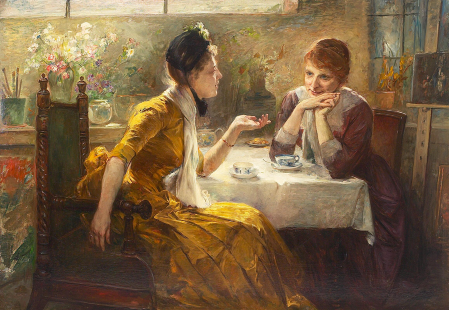 Женщина, читающая за чайным столиком (Ханна Люсия Баук).