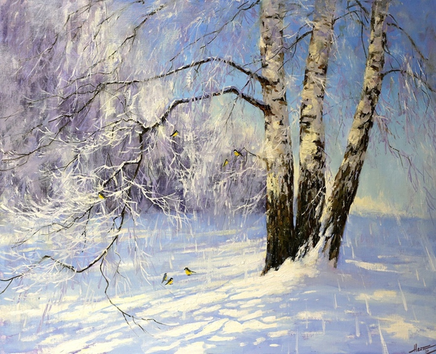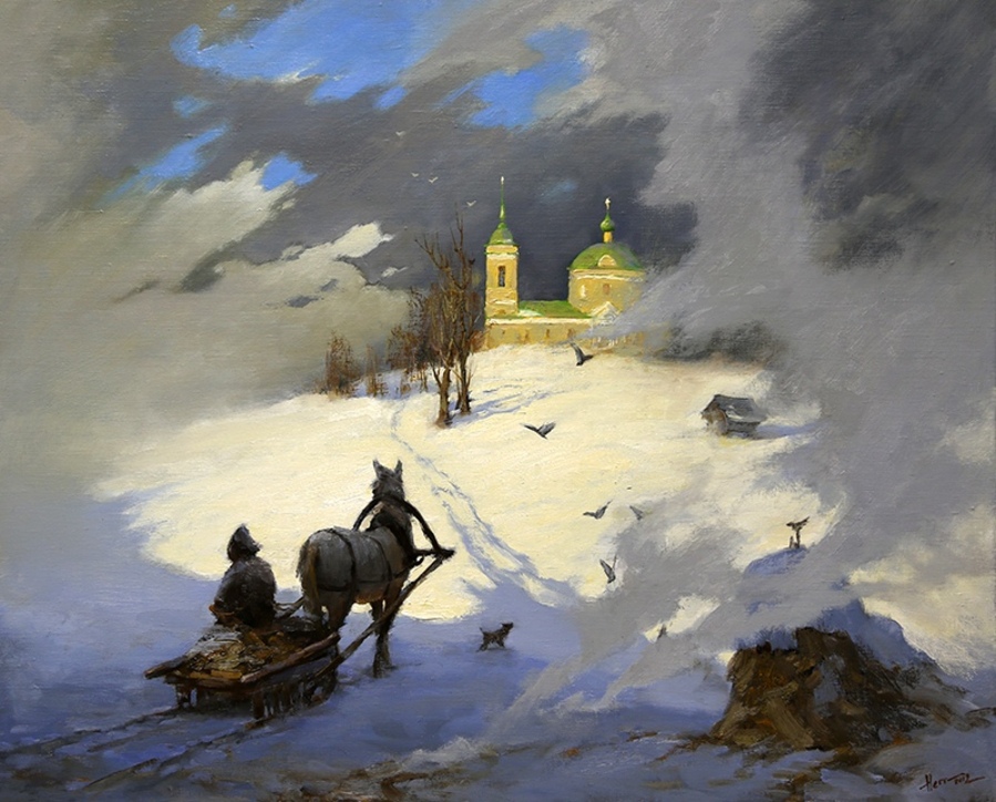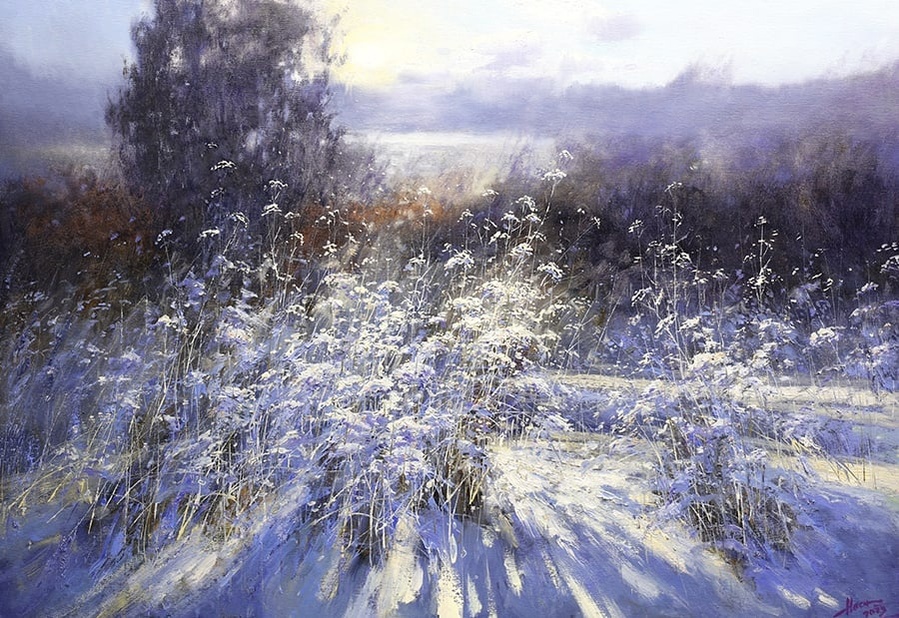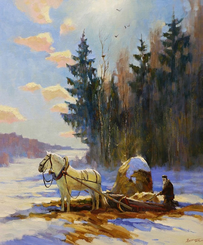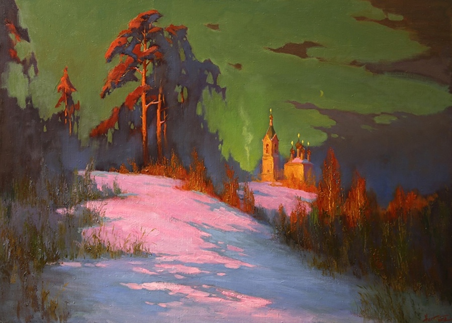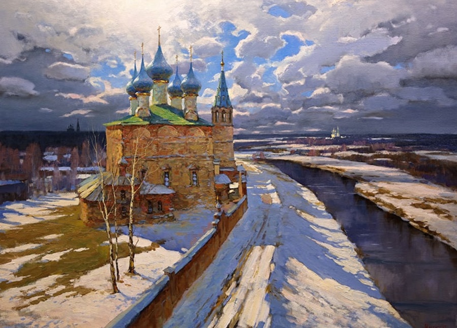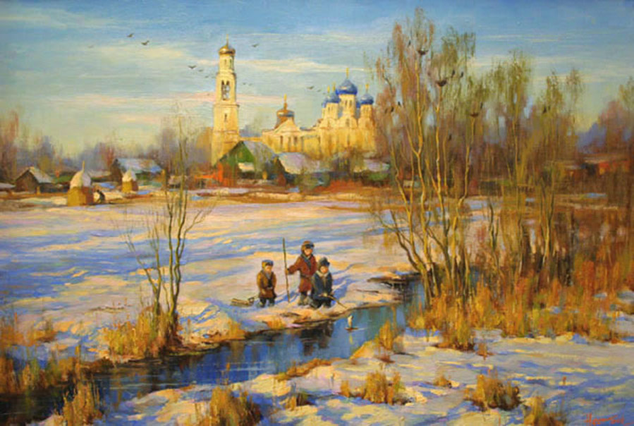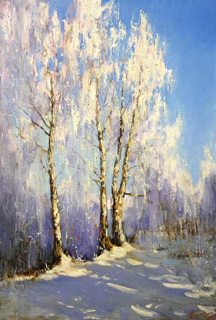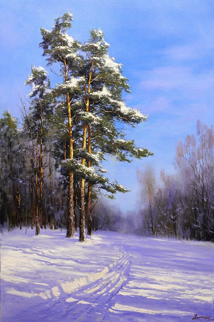 На своих полотнах он создает поэтическую и лирическую картину русской природы, постоянно учится у таких мастеров реалистической пейзажной живописи, как И.Левитан, А.Саврасов, Ф.Васильев.