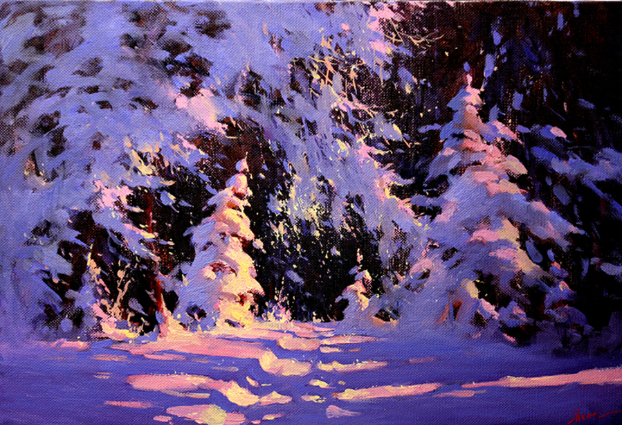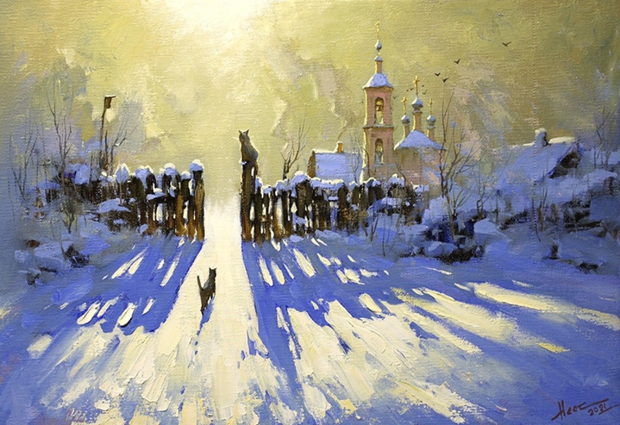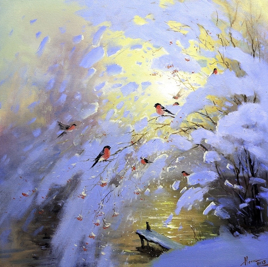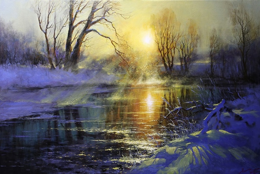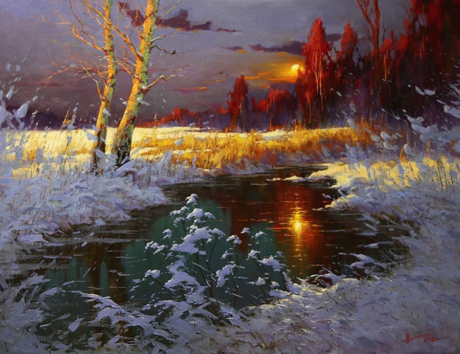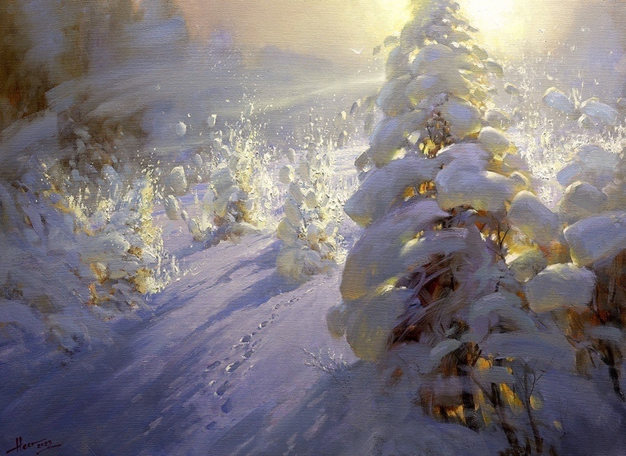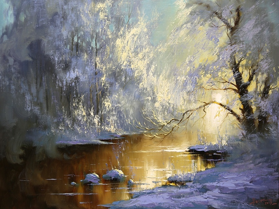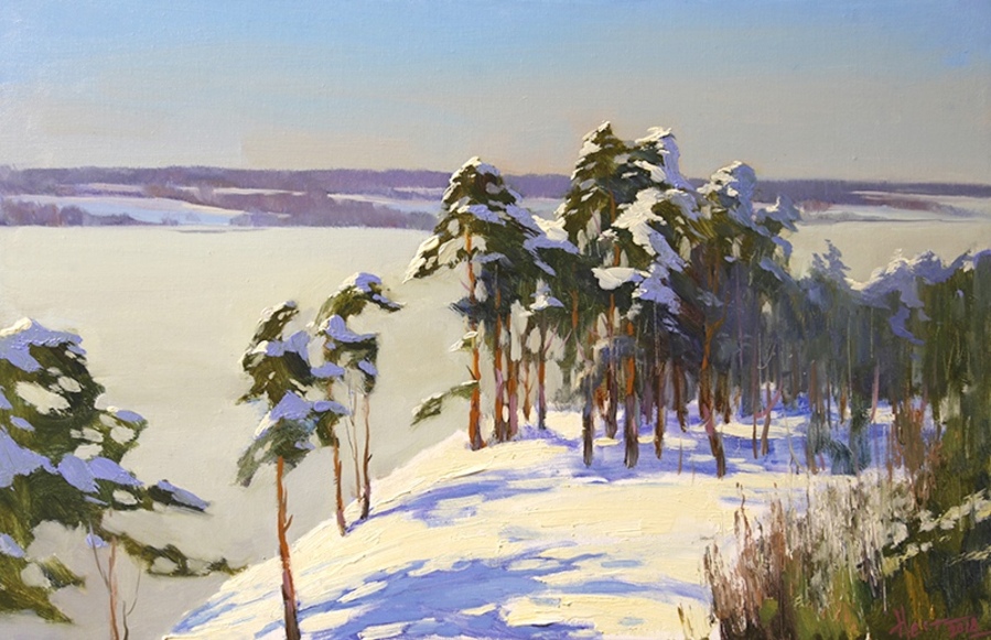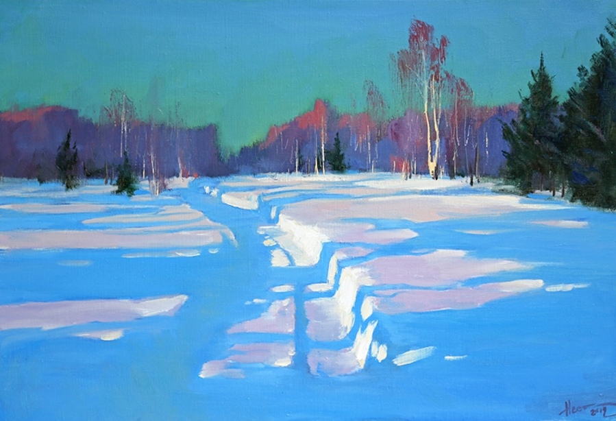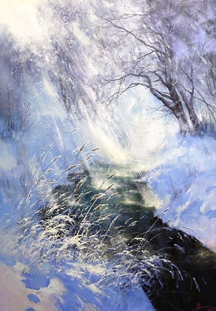 На своих полотнах он создает поэтическую и лирическую картину русской природы, постоянно учится у таких мастеров реалистической пейзажной живописи, как И.Левитан, А.Саврасов, Ф.Васильев.