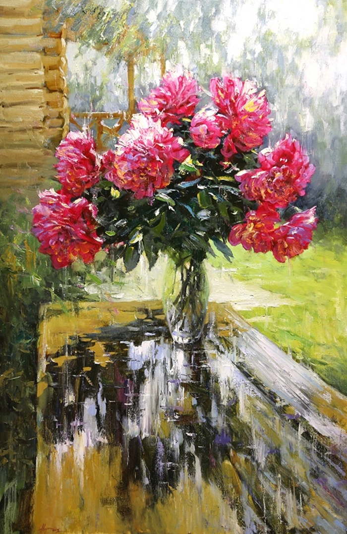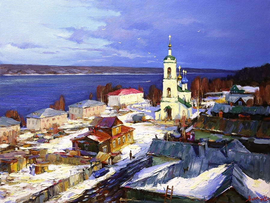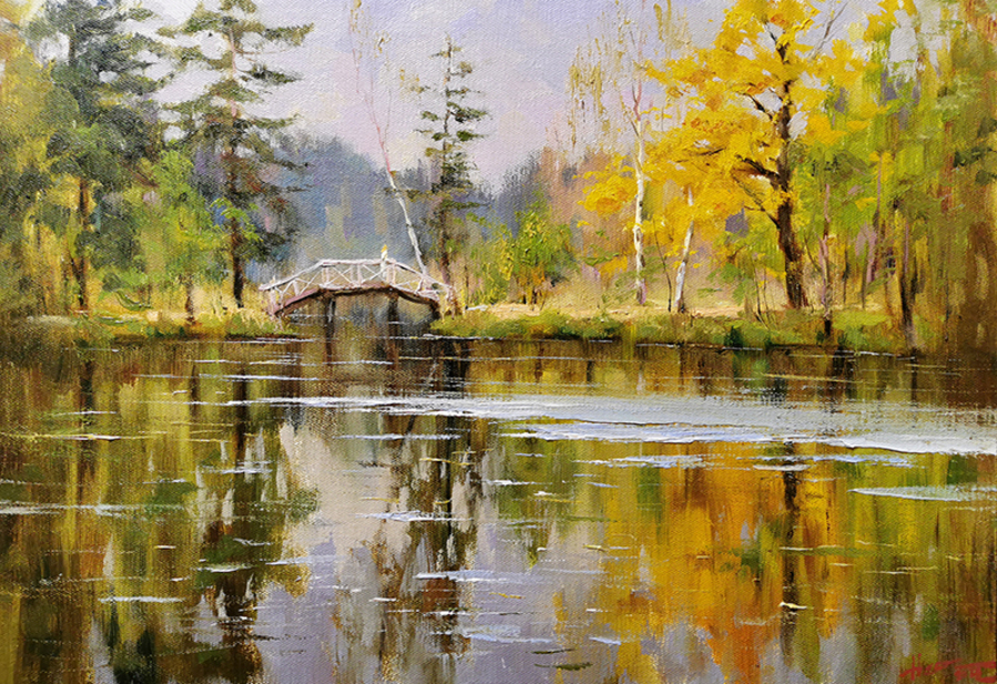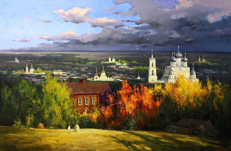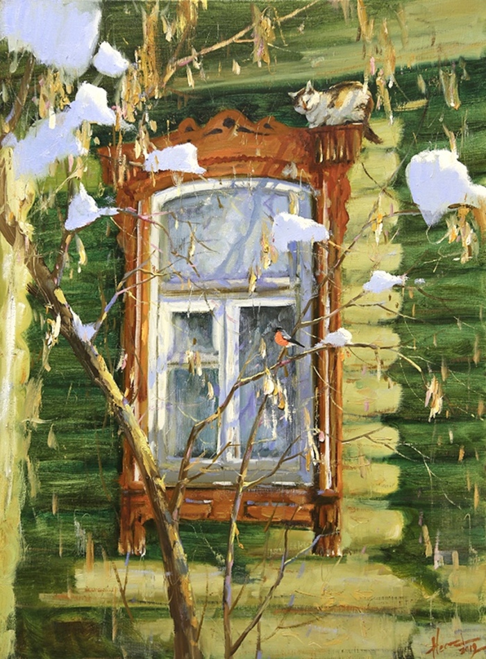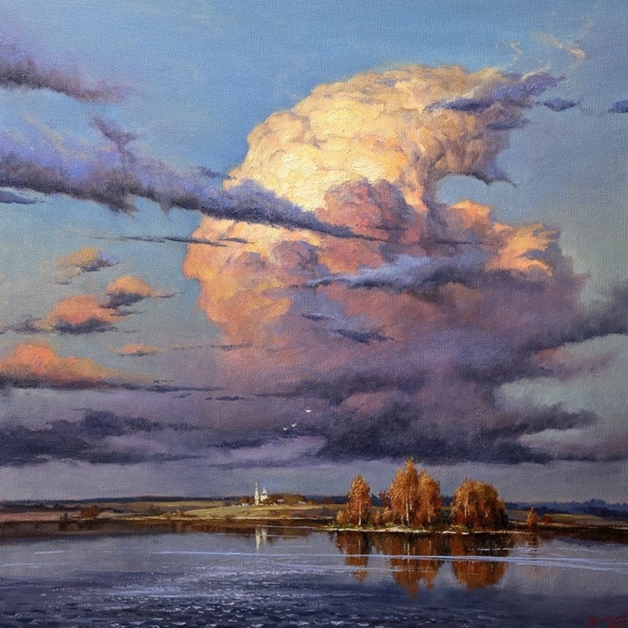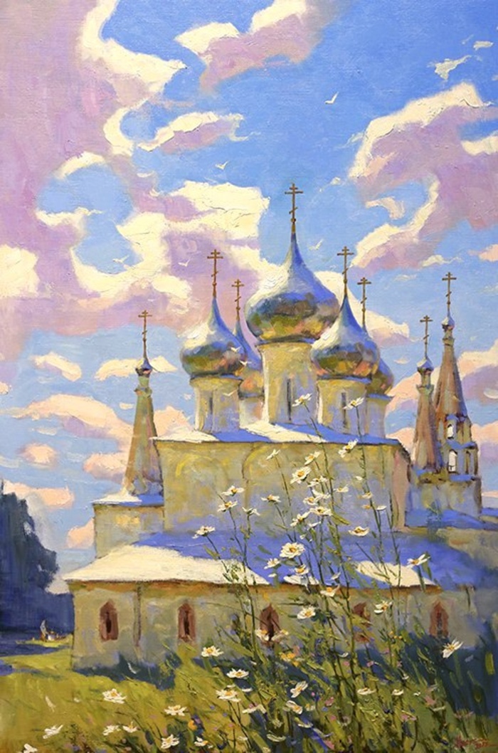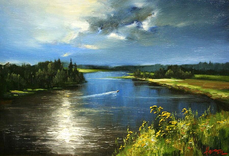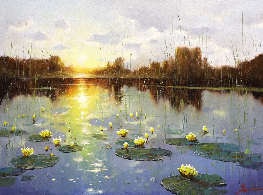 На своих полотнах он создает поэтическую и лирическую картину русской природы, постоянно учится у таких мастеров реалистической пейзажной живописи, как И.Левитан, А.Саврасов, Ф.Васильев.