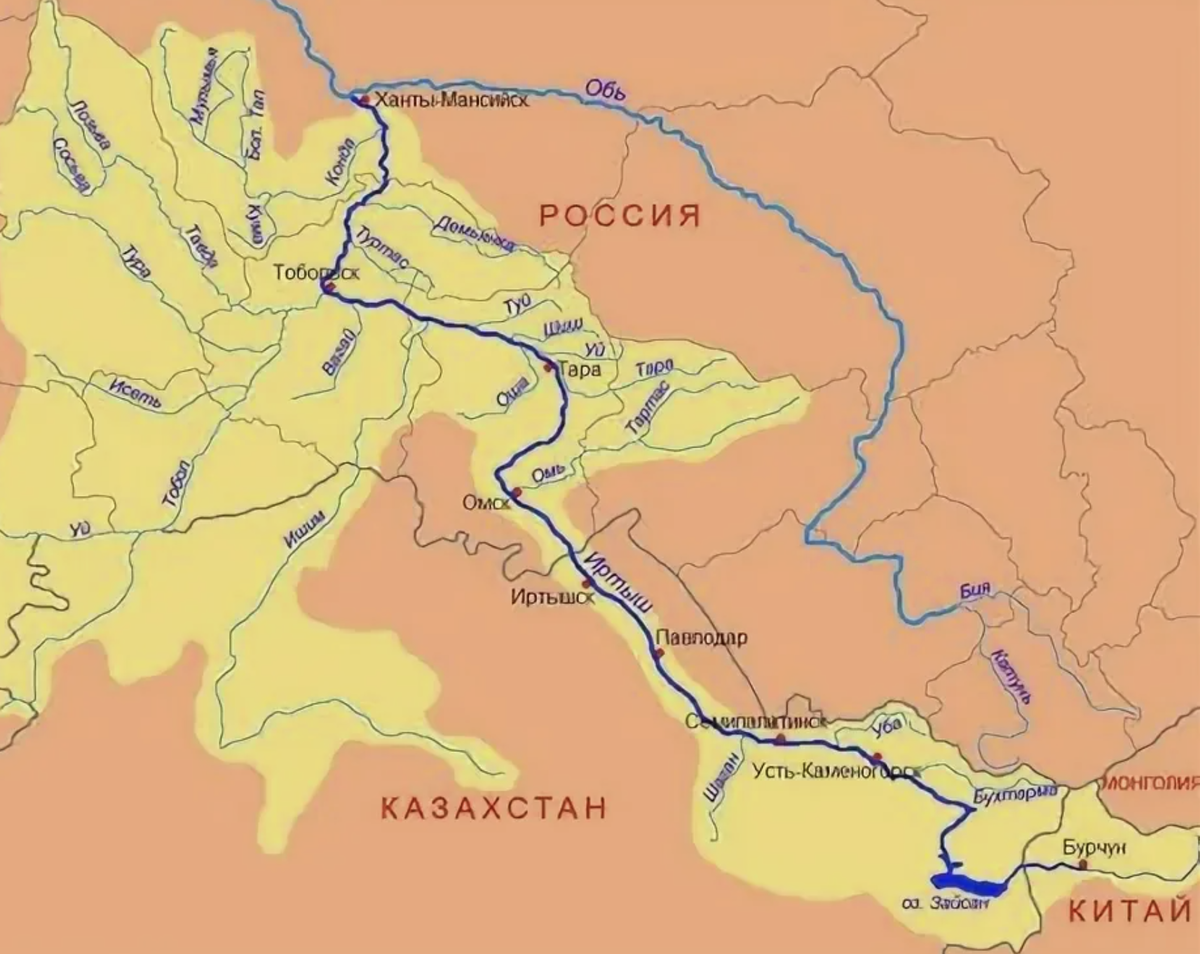 А Иртыш, главный приток Оби, на самом деле длиннее самой Оби! И он приходит к нам из-за границы. Его исток находится в Китае, на восточных склонах Монгольского Алтая. А по территории России он уже течет могучим, полноводным потоком.