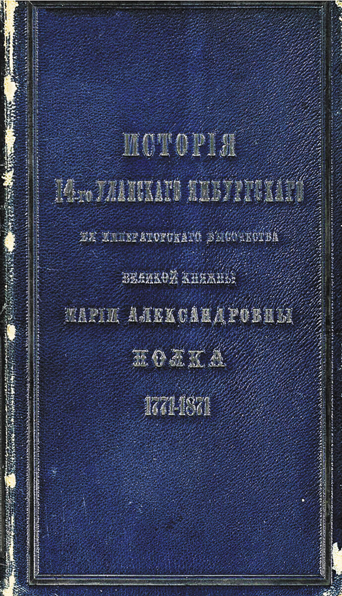 Обложка книги "История 14-го уланского Ямбургского Ее Императорского Высочества великой княжны Марии Александровны полка. 1771–1871″ (СПб., 1873–1874)