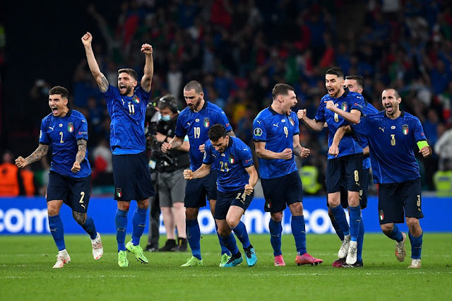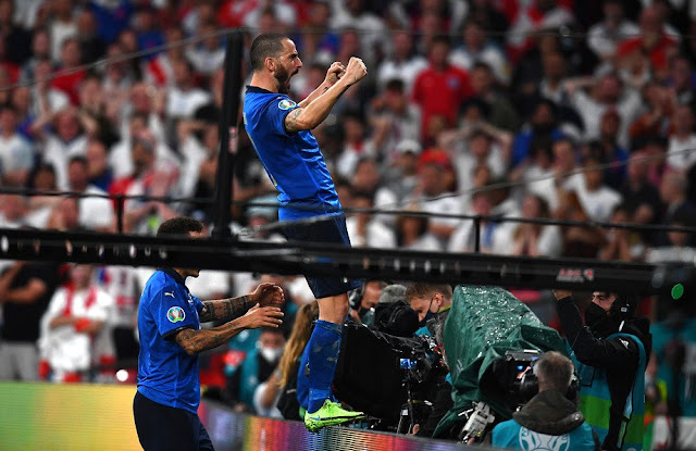 - В-третьих, на чумовом уровне провёл турнир Лео Бонуччи, забивший, пожалуй, самый важный мяч на всём Евро, а также хладнокровно бивший пенки. Особенно радостно за эту связку центральных защитников, которые благодаря этой победе официально вписали своим имена золотыми буквами в историю итальянского футбола, встав в один ряд с великими Мальдини, Каннаваро и др.