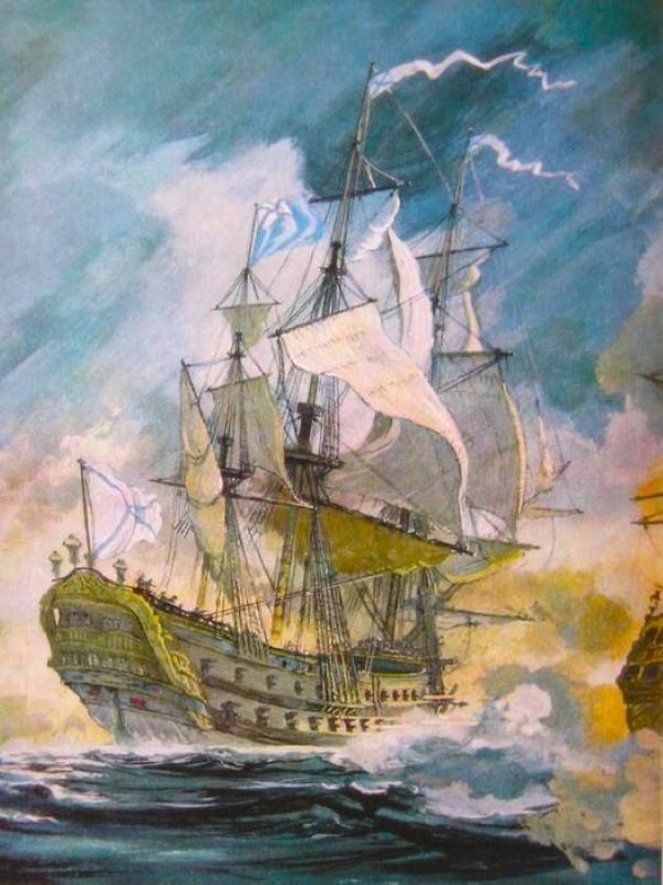 Федор Орлов служил на флагманском корабле «Св. Евстафий», который столкнулся с загоревшимся турецким флагманом. Федор увидел, что на их корабль падает горящая мачта, и бросился к спасательной шлюпке. Тех, кто встречался ему по дороге, он, силач, хватал и просто швырял в шлюпку. Тем, кто ему попался, повезло. Они спаслись. Среди них был и сын адмирала Спиридова. Адмирал тоже вместе с Орловым успел запрыгнуть в шлюпку за мгновение до взрыва. Основная часть экипажа погибла вместе с линкором.