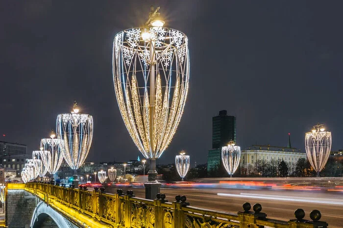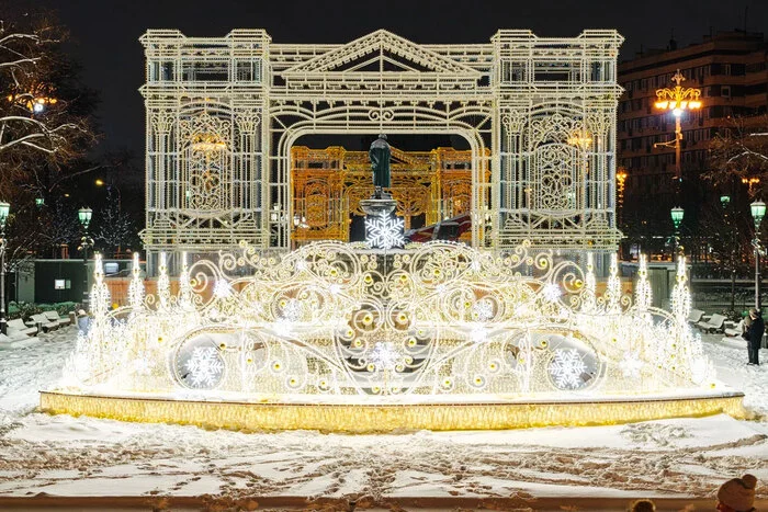 На Пушкинской, Тверской и Манежной площадях, в Новопушкинском сквере, и Камергерском переулке появились световые арки. По Бульварному кольцу протянулись световые тоннели. На опорах освещения установили световые консоли. А на Поклонной горе теперь сияет самый большой светящийся шар в мире высотой 20 метров. Похожий поставили и в Парке Горького.