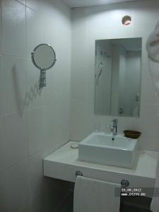 Помимо этой «прелести», в номере на полу не кафель, как во всём отеле, а замечательные уличные плиты. Большие такие, всегда холодные и пачкающие. У нас осталось впечатление, что их вообще не моют. Поставила сумку на пол и потом дно у сумки было белое, пришлось отряхивать.. ходить босиком по этим плитам невозможно, я постелила на пол декоротивные коврики с кроватей и сразу стало уютнее. Ещё там довольно своеобразная система подачи горячей воды, спустя 15 минут после открытия крана. Но это мелочи. Живущие в этом «великолепном» номере после нас дамы увидели там некого жука. Большого такого. Неприятненько, зато в качестве извинения дают бутылку бесплатного (ведь система «всё включено») вина.