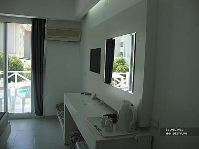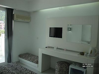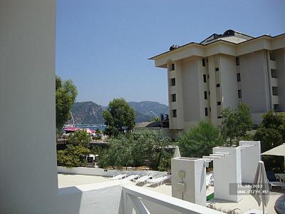 На сайте Пегаса написано, что все номера имеют вид на море/частичный вид на море. Спешу расстроить тех, кто ценит вид из номера. Русских в номера с видом на море не селят. «Частичный вид на море» представляет собой прекрасный вид на соседний отель и на гору. [img href=http://f.otzyv.ru/f/11/08/86319/9329/15081212310327.jpg]