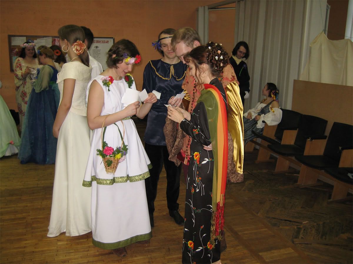 Контрданс "Все в саду зеленое" - как раз сцена перед поцелуем - первый кавалер целует третью даму )) Потом первая дама целует третьего кавалера, а вторая пара, видимо, олицетворяет собой некий "громоотвод" )) В общем весьма занятный танец :)
