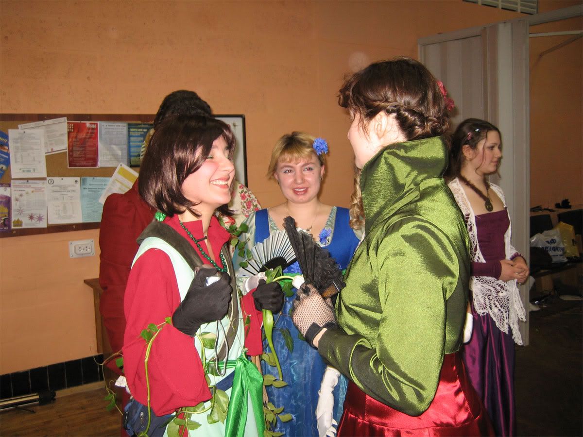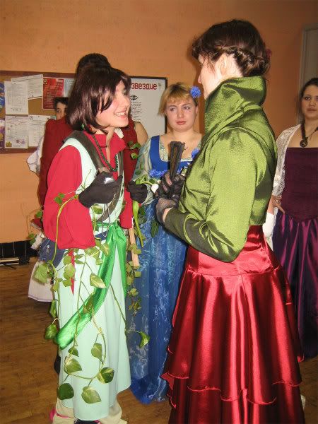 Очень интересные и, я бы сказала, смелые костюмы. Особенно понравилась нарисованная лилия на спине у светловолосой девушки (увы, имени опять же не знаю), впечатляюще смотрится )