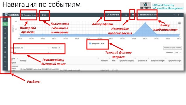 35. Разделы Группировка и быстрый поиск Интервал времени Количество событий в интервале Авторефреш Настройка представления Выбор представления Текущий фильтр запроса Навигация по событиям