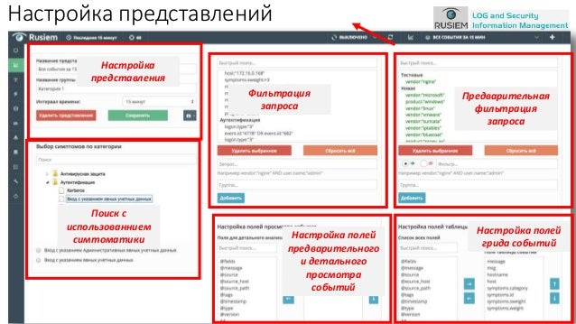37. Фильтрация запроса Предварительная фильтрация запроса Настройка представления Поиск с использованнием симтоматики Настройка полей предварительного и детального просмотра событий Настройка полей грида событий Настройка представлений