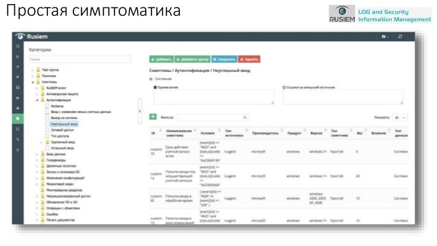 3. Что такое SIEM SIEM это не панацея, это не замена AV/IPS/IDS/DLP/DPI! • SIEM – аггрегатор информации от различных источников • Получаемые данные слишком разнородны, поэтому приводятся к одному виду • Данные от источников как «сплетни». Поэтому они проверяются по нескольким факторам • Это «думалка», визуализация для полученной информации и быстрые поисковые механизмы • Кроме всего – это защищенное хранилище в котором факты о случившемся не будут удалены даже администратором. 4