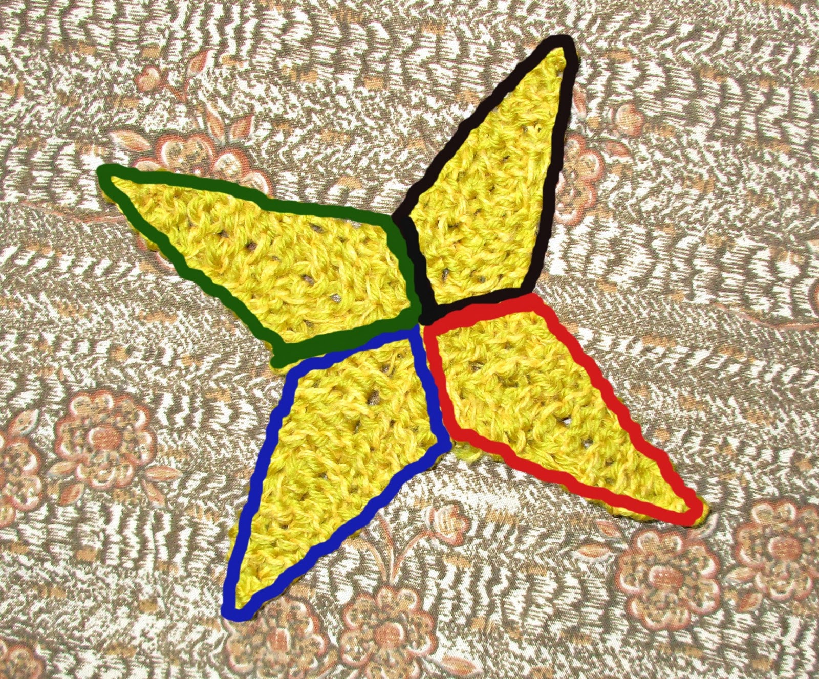 Связали мы её из четырёх одинаковых элементов, ввиде неправильных четырёхугольничков.