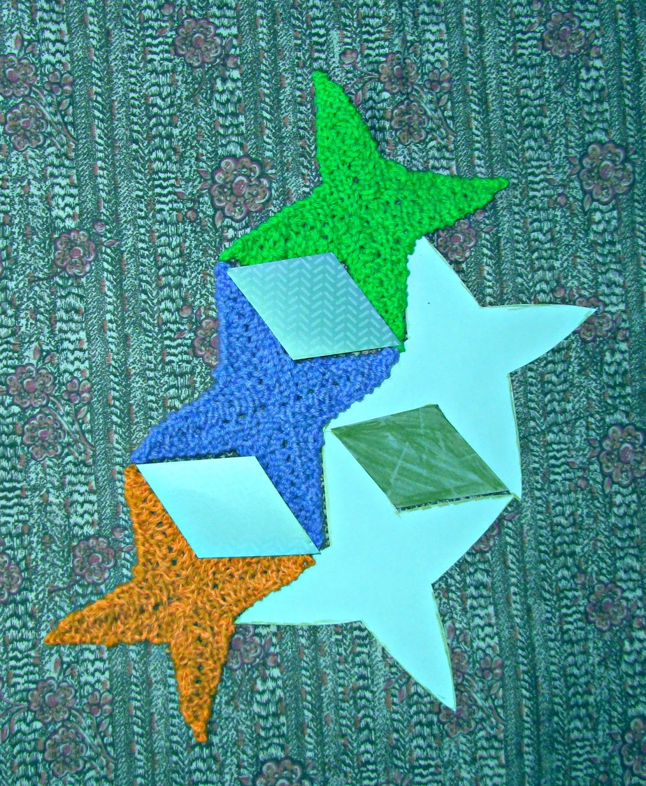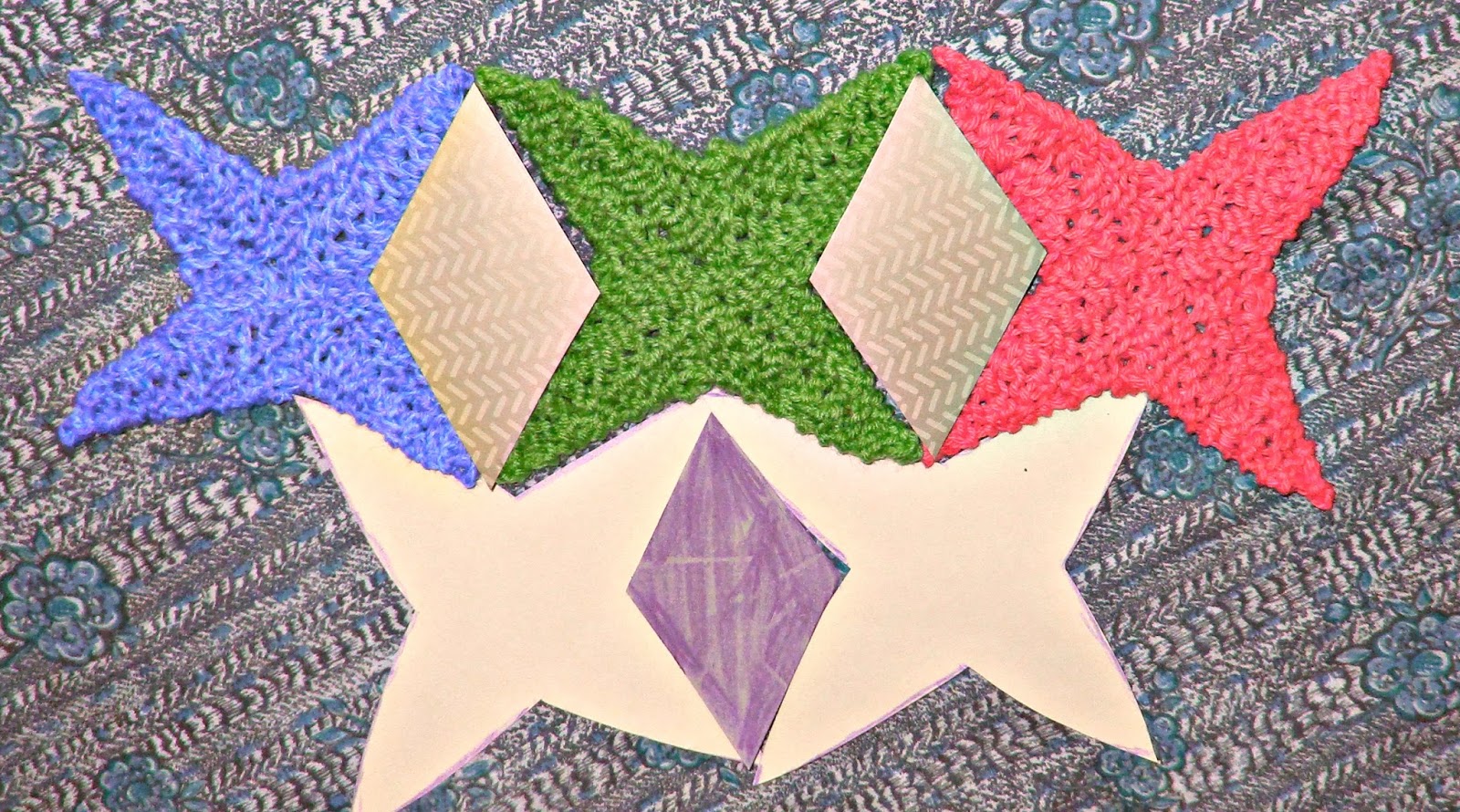 Мозаика таких ''морских звёзд'' прекрасно goполнится вспомогательными ромбиками, которые связать не представляет труда.Можно их связать в любом направлении.