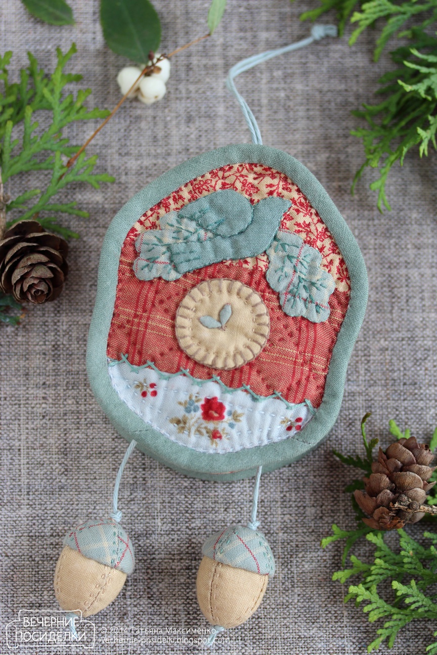 Любуемся и вдохновляемся текстильными вещицами для красоты и уюта нашего дома с блога "Вечерние посиделки" - елочные игрушки (ежик, свеча, часы с кукушкой и елочка)