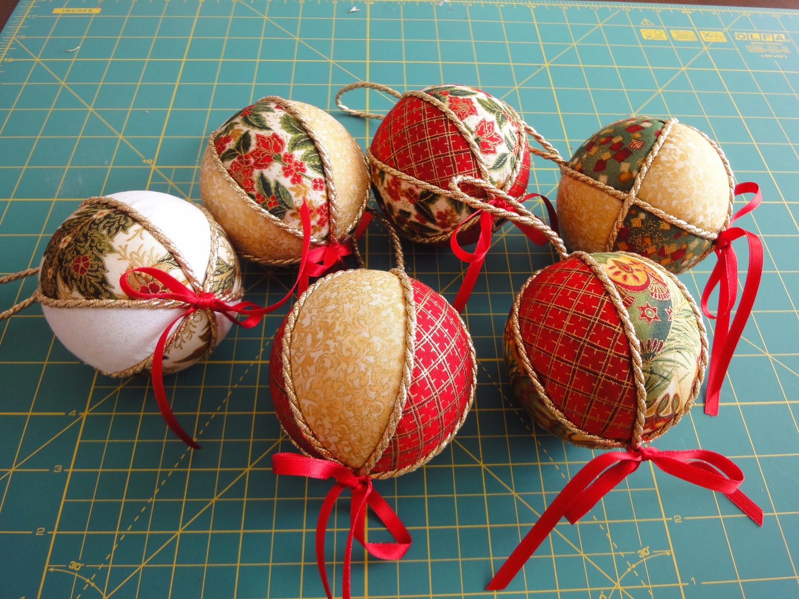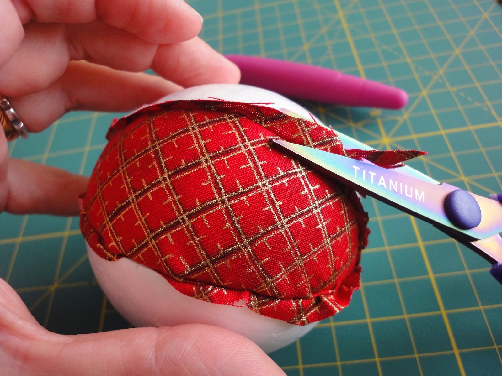 C помощью кусочков тканей можно оформить новогодние ёлочные шары. Получается просто и красиво.