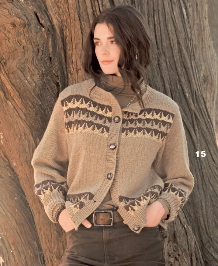 Clandon – это бесшовный пуловер с кокеткой текстурным узором, который вяжется сверху вниз круг.р. В описании узор предоставлен в виде схемы и письменной инструкции.