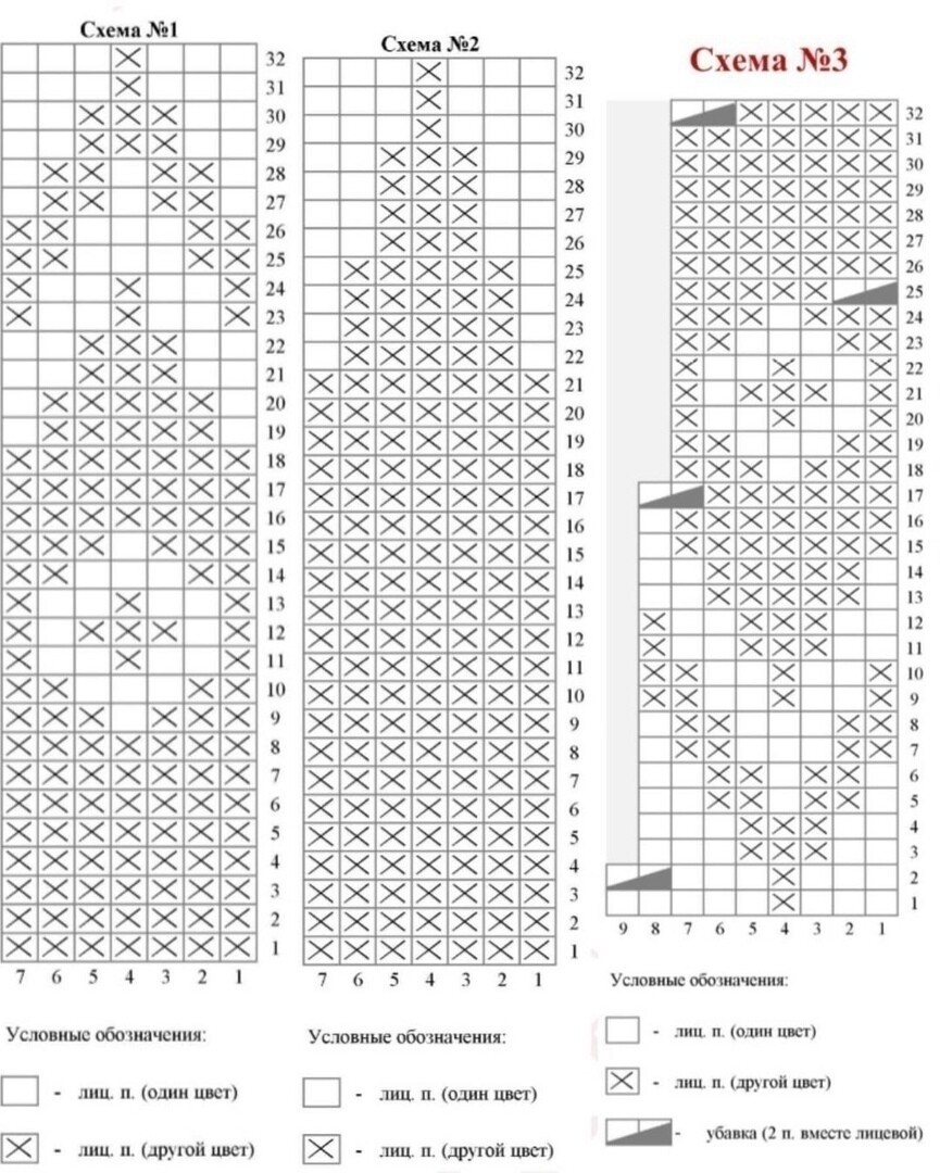 Плотность вязания: узор 3 — 22 п. х 28 р. = 10 х 10 см.