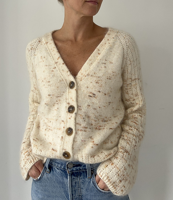 Универсальный летний топ вяжется без швов, сверху вниз, лицевой гладью. Сначала модель выполняется поворотными рядами (на высоту горловины переда), затем - круговыми рядами до низа пройм, далее рукава отделяются от корпуса, сам корпус и затем рукава вяжутся круговыми рядами до низа. Все кромки (горловина, низ корпуса и рукавов) обработаны полым шнуром.