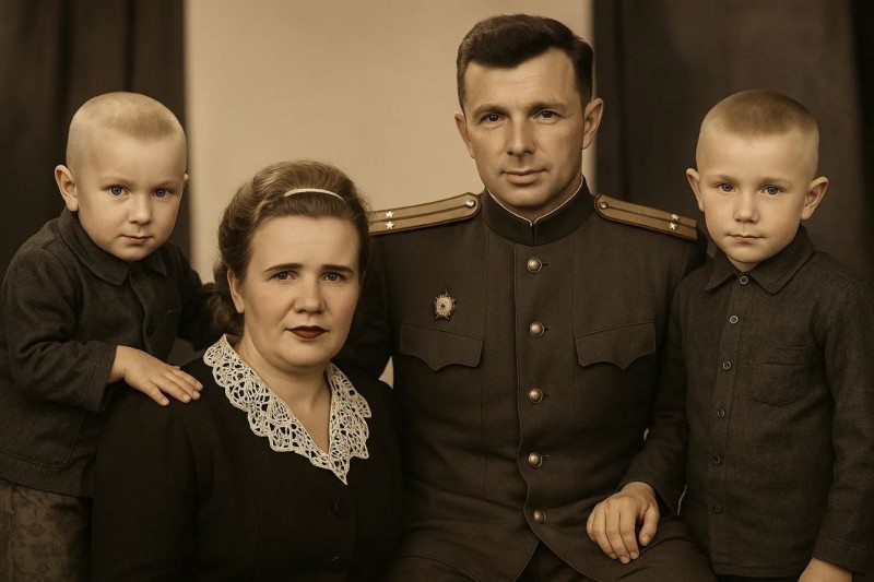 Выезжая из Берлина, семейство Бордуковых решило сходить в фотоателье, чтобы сфотографироваться на память. Вот так и остались они запечатленными в старинной фототехнике сепия, которая была особенно популярна в послевоенные годы, – молодой и красивый полковник Андрей Бордуков со своей женой