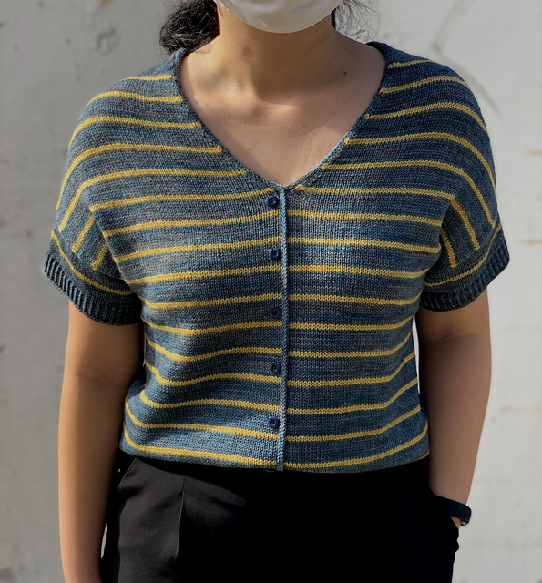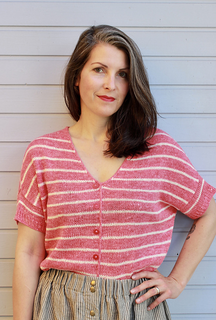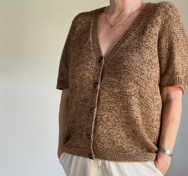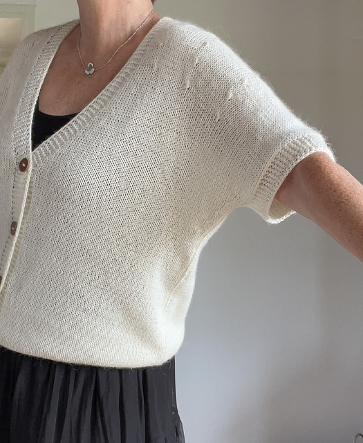Свитер Carlotta вяжется сверху вниз узором со снятыми петлями.