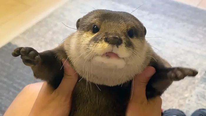 Это, друзья, азиатская бескоготная выдра, и она совсем не похожа на ту выдру, что живёт в водоемах нашей страны, и уж, тем более, по своим повадкам не имеет ничего общего с гигантской амазонской выдрой. Внешне она, конечно, обычная выдра, вот только очень маленькая. Вес взрослых особей обычно не превышает 3 килограммов – меньше домашней кошки!