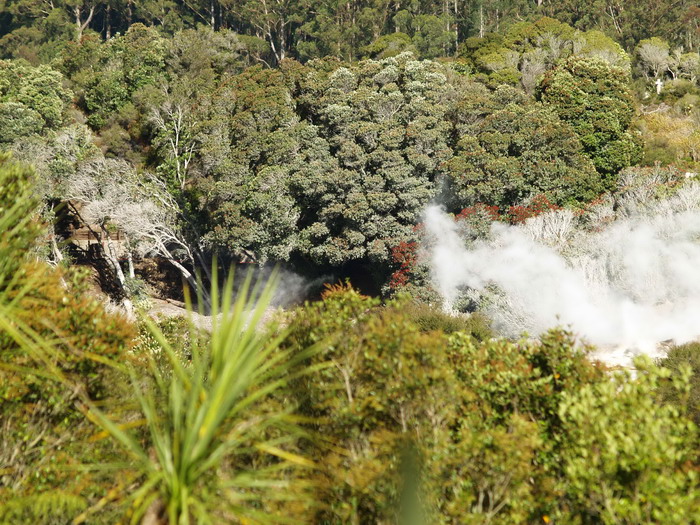 Роторуа - это изумрудная зелень окружающих год, синяя гладь огромного озера и дымящиеся гейзеры.