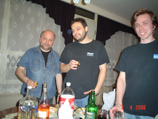 - Во-вторых, я загрузил фотографии с преферансных турниров 2005 и 2006 года на Picassa. Таким образом, траффик теперь идёт туда, а не на мой сервер, все довольны - фоты грузятся быстрее, а мой канал - разгружен. Нужно ещё найти где я сложил фоты с последнего турнира (2007) и выложить туда же. Дополнительно, я сделал на Пикассе альбомы с фотами из моего отпуска (Луганск-Киев-2008) и с моего и моей бывшей жены дня рождения 2004 года (последнего по-настоящему нашего общего праздника), там можно увидеть забавные рожицы - мою и моих подруг и друзей. Классная вещь насчёт Пикассы - там можно оставлять комменты к фотам.