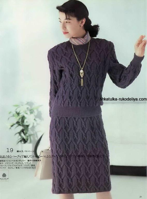 Узор 1: (спицы № 3,5) резинка (нечетное число петель). Лицевые ряды: кромочная, попеременно 1 лицевая, 1 изнаночная, закончить 1 лицевой, кромочная. Изнаночные ряды; петли провязывать по рисунку. При четном числе петель в лицевых и изнаночных рядах постоянно провязывать попеременно 1 лицевую, 1 изнаночную.