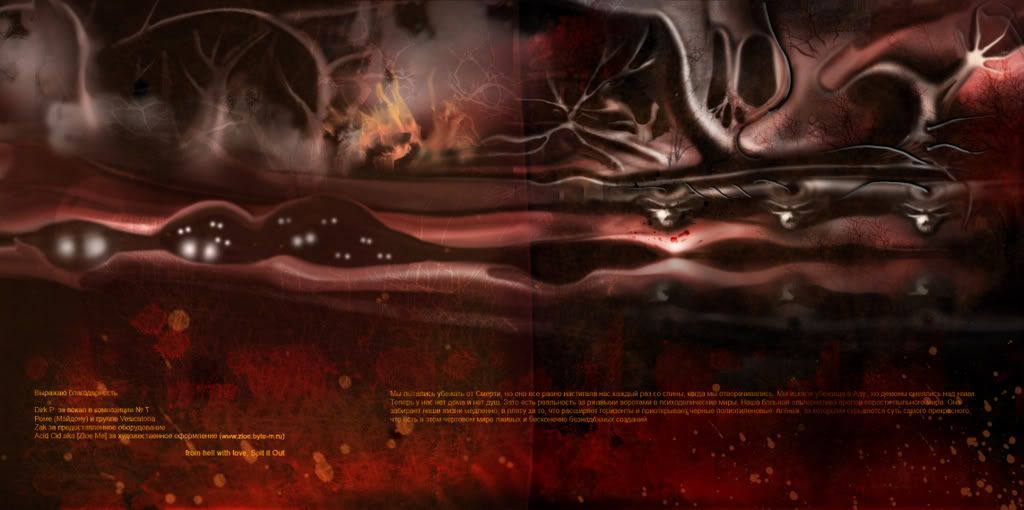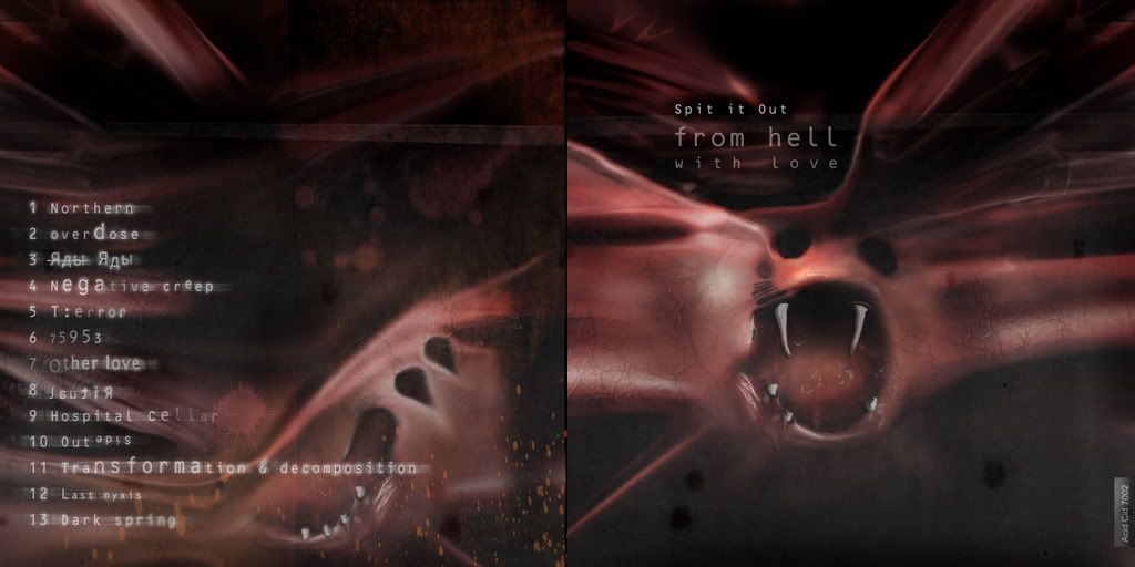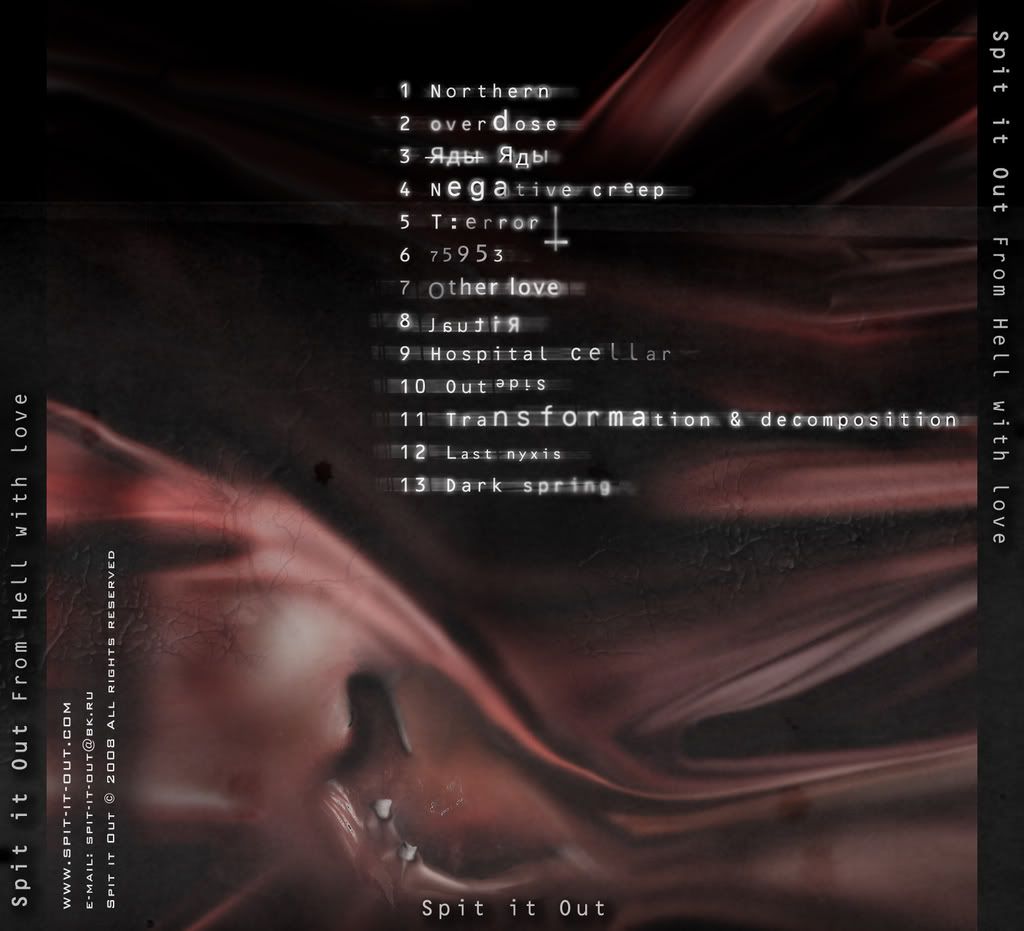 Project 'Spit it Out' was 4 years ago. Two albums have been realised for last years. Temperory musicians and singers took part in creation of the vinyl.. Style of music: dark ambient, ritual dark ambient,indastrial and rhythmic noise. I am engaged in music for ten years. I began with a guitar and the piano, that gave me good experience of composing. Now i use an eiectroguitar as alive noise support or as an the lead soundl; synthesizer and sampler. Also i recording or use i n alive a rumble of high-voltage electricity cables,sound of jet engines,a sound of impacts (basally metal and steel) and many other things. Anything that could be interesting to me as for the musician..Also i experiment with various types of microphones,guitar pedals and processors (basically lamp or analog).. I enjoy not ordinary approach to a sound and sounding