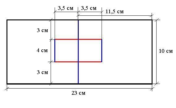 Затем в скрап-бумаге надо сделать надрезы и пробиговать в соответствии с рисунком приведенным ниже (линии красным – надрезать, синим – пробиговать):