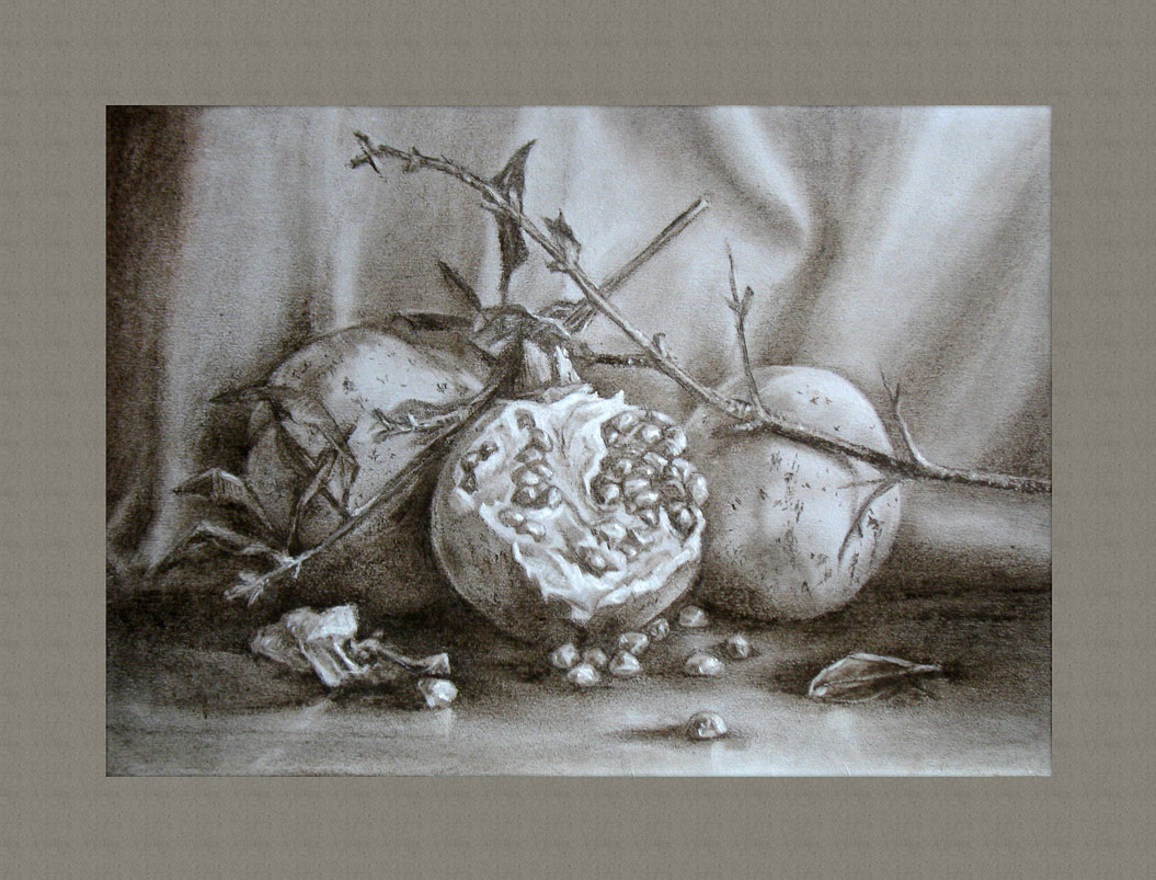 Материалы: серый картон, сангина, мел, ластик.