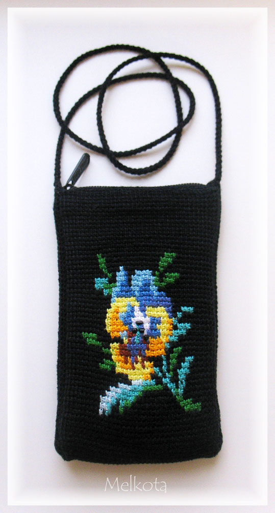 Короче говоря, доплела я сумочку, вставила фоновую ткань, подклад и вшила молнию. Вот такая штучка получилась: