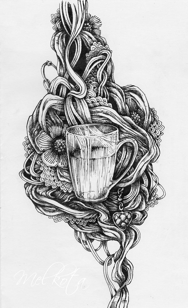 Формат А6. Материалы: гелевая ручка, карандаши.